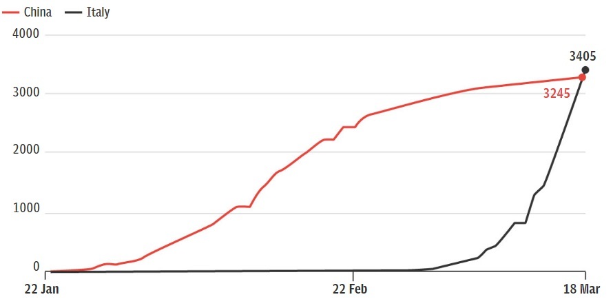 בתי החולים באיטליה עמוסים יתר על המידה, אבל המומחים מודאגים יותר משיעור המתים הגבוה לכאורה מהקורונה, כאשר מספר המתים באיטליה עולה על מספר המתים בסין.