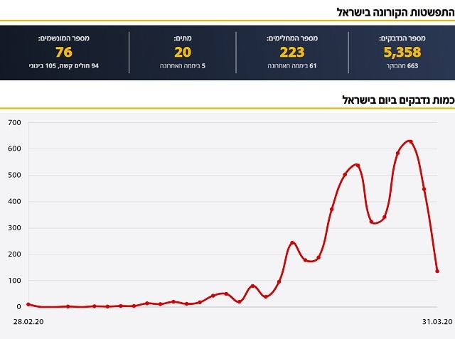 גרף חולי קורונה בישראל: 5358 חולים, 223 מחלימים