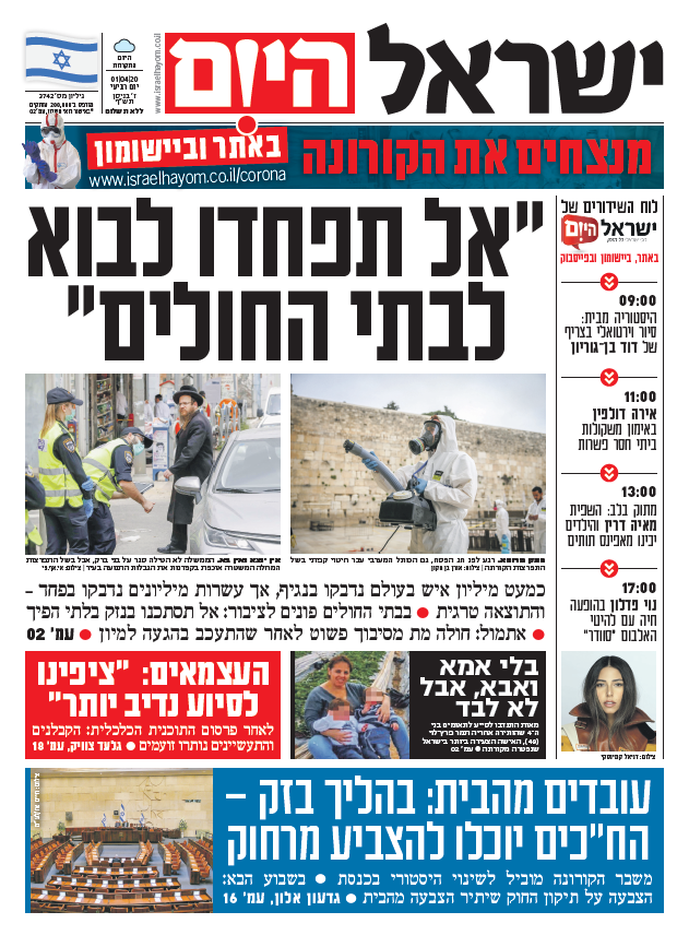 כותרות עיתונים ישראל היום/ ידיעות אחרונות 01/04/20