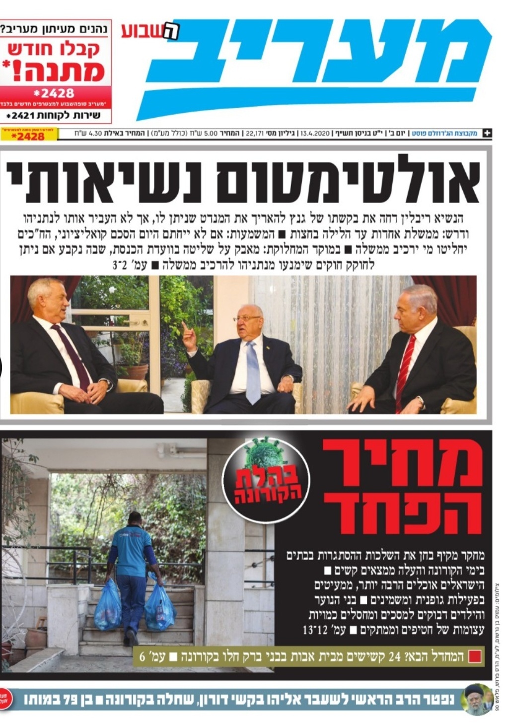 • כותרות עיתונים – 13.04.2020 תמונה מצורפת