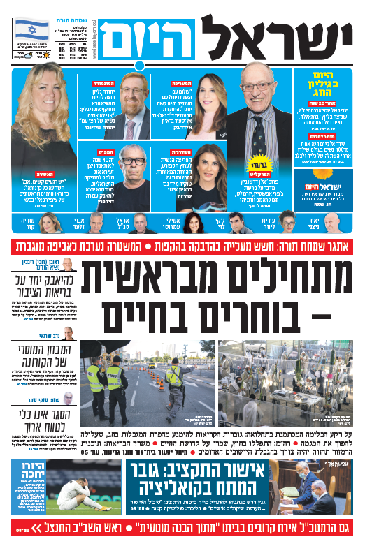 שער עיתון ישראל היום – 09.10.2020