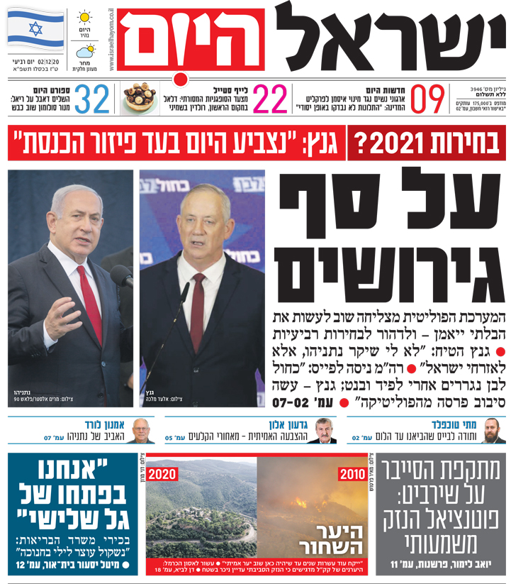 שער עיתון ישראל היום – 02.12.2020