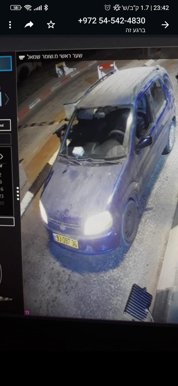 בתמונה הרכב שממנו בוצע הירי 2 מחבלים חמושים בנשק מסוג קרלו,
