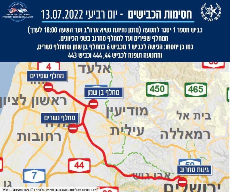 חסימות שינויים ושיבושים בהסדרי התנועה הצפויים במהלך ימי הביקור.