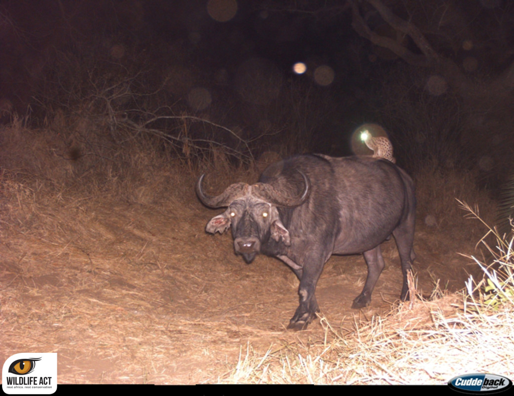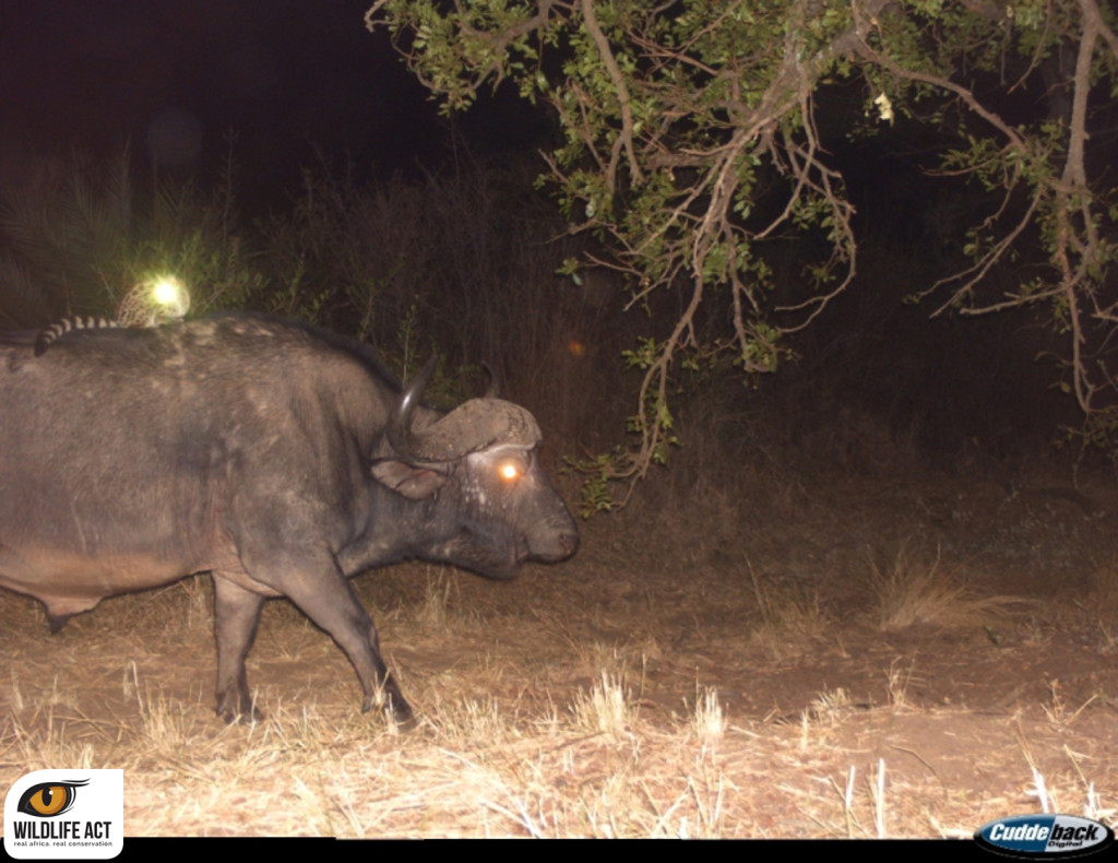 גחן מצוי (genet) יונק טורף, נתפס בעין המצלמה רוכב על גב של באפלו וקרנף לבן. תמונות: http://wildlifeact.com