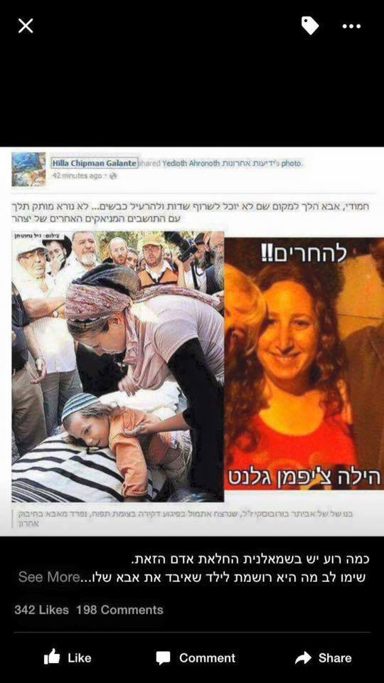 כבר יומיים שהתמונה של הכיעור בהתגלמותו מסתובבת לי מול העיניים לגברת בתמונה קוראים הילה צ'פמן גלנט. דעאשית בהתגלמותה! ראו בתמונה מה רשמה לילד קטן שאביו נרצח והוא משתטח על קברו. רק מראה ומוכיח עד כמה העולם של אנשים ובהם "הגברת" מעוות ואכזרי!