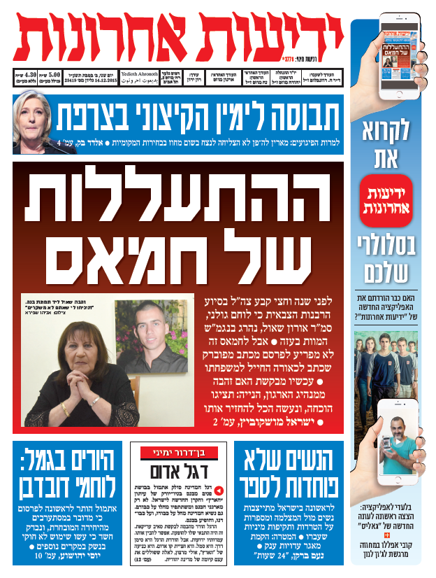 כותרות עיתונים 13/12/2015 - ישראל היום / ידיעות אחרונות