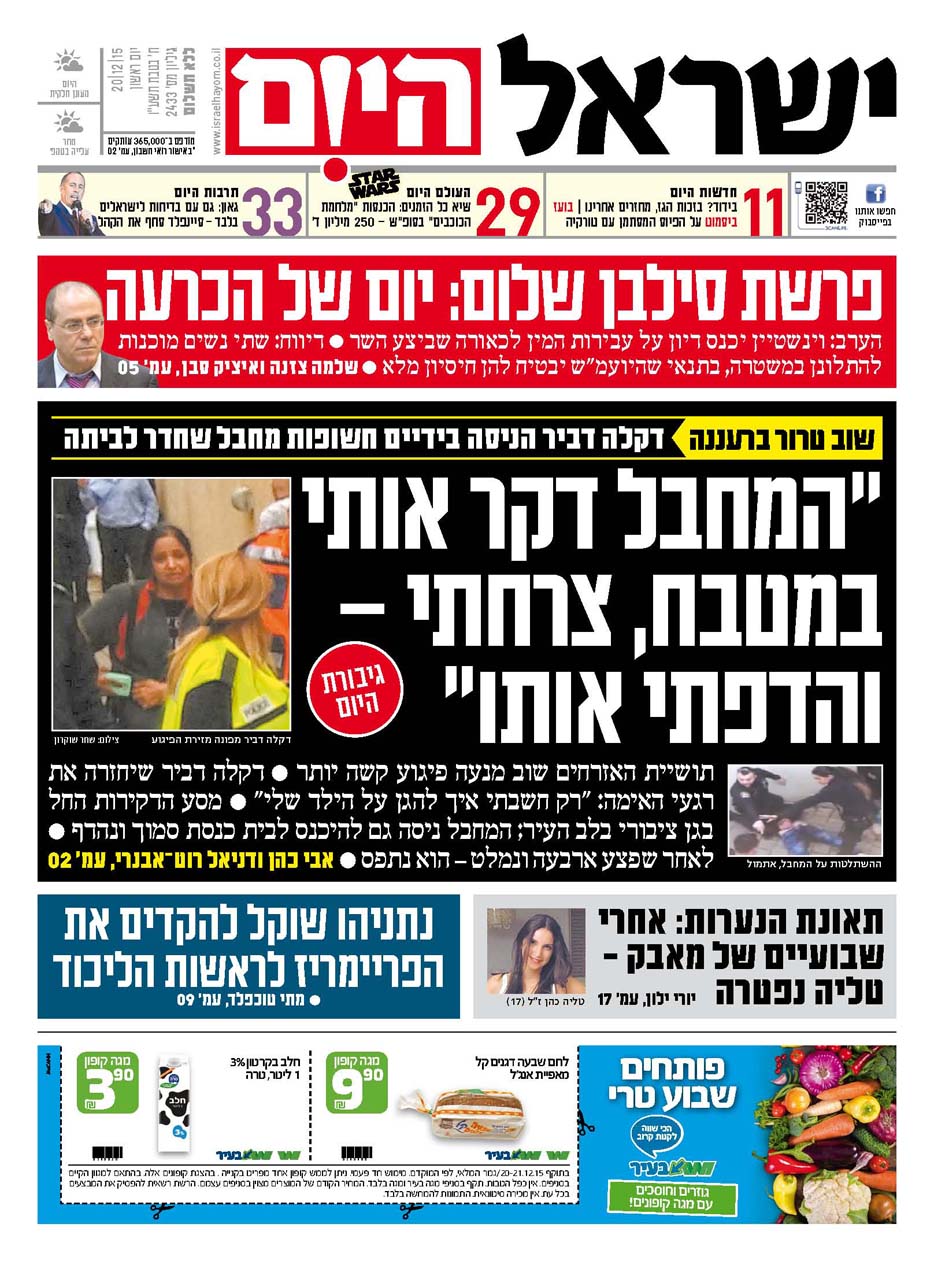 כותרות עיתונים 20/12/2015 - ישראל היום / ידיעות אחרונות
