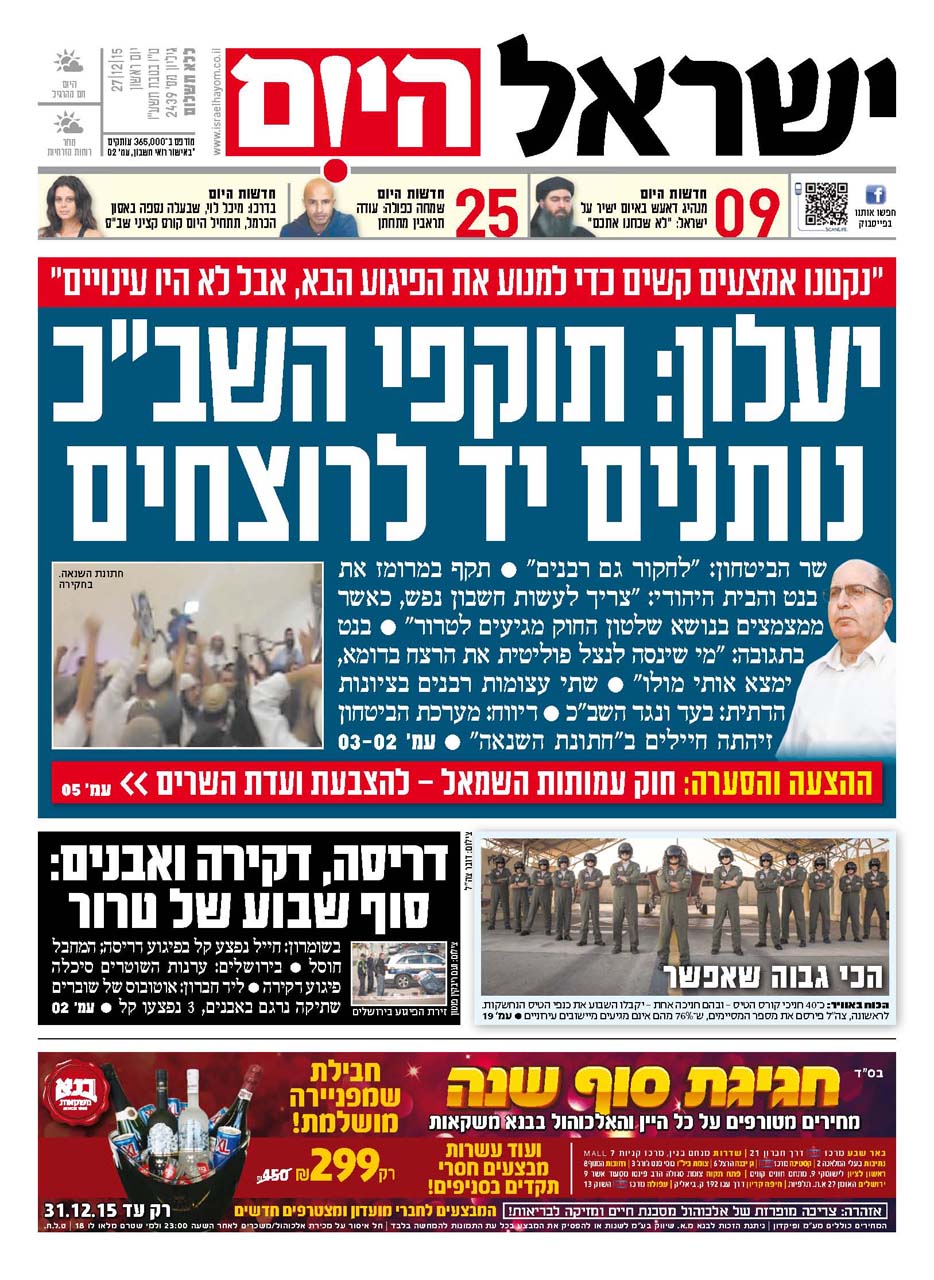 כותרות עיתונים 27/12/2015 - ישראל היום / ידיעות אחרונות