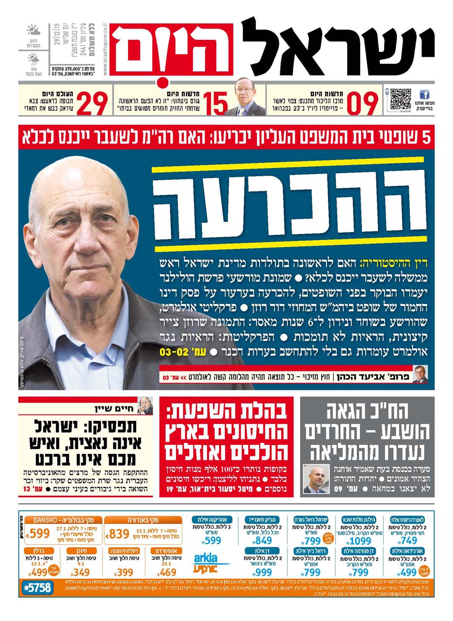 כותרות עיתונים 29/12/2015 - ישראל היום / ידיעות אחרונות