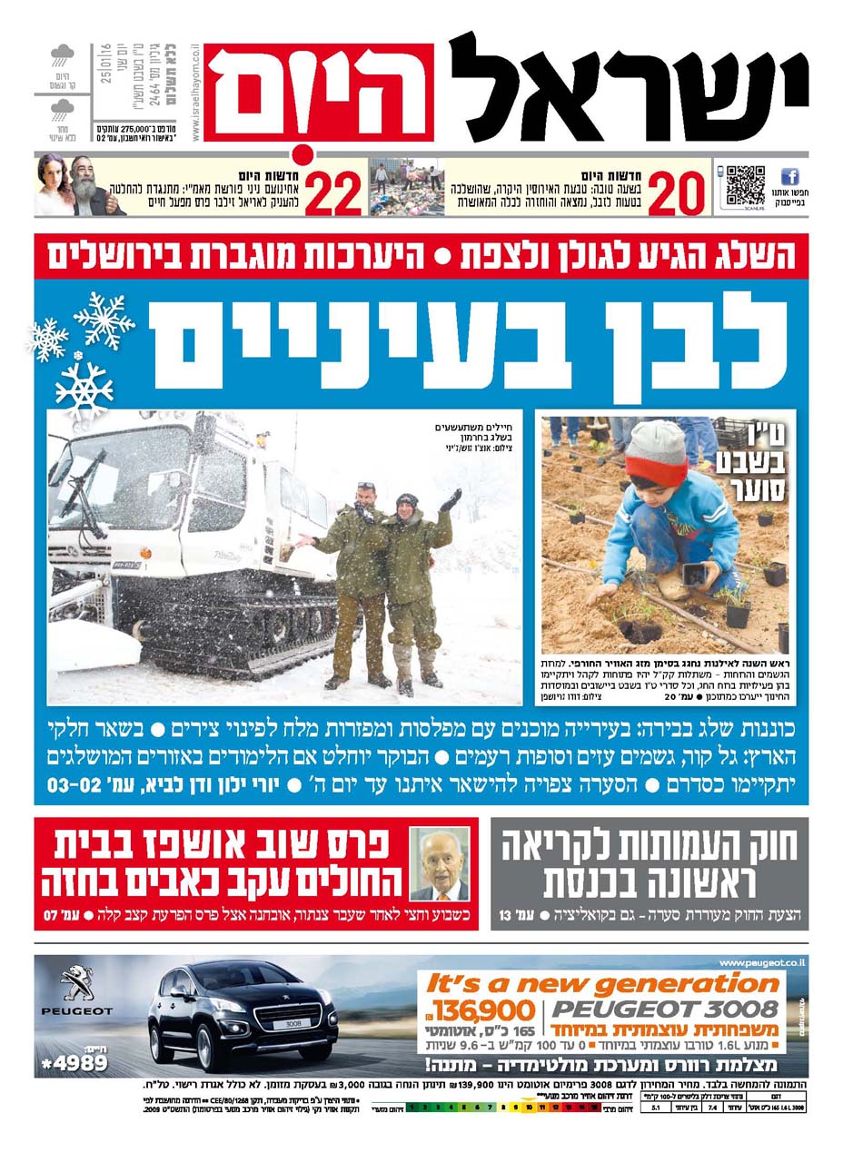 כותרות עיתונים 25/01/2016 - ישראל היום / ידיעות אחרונות