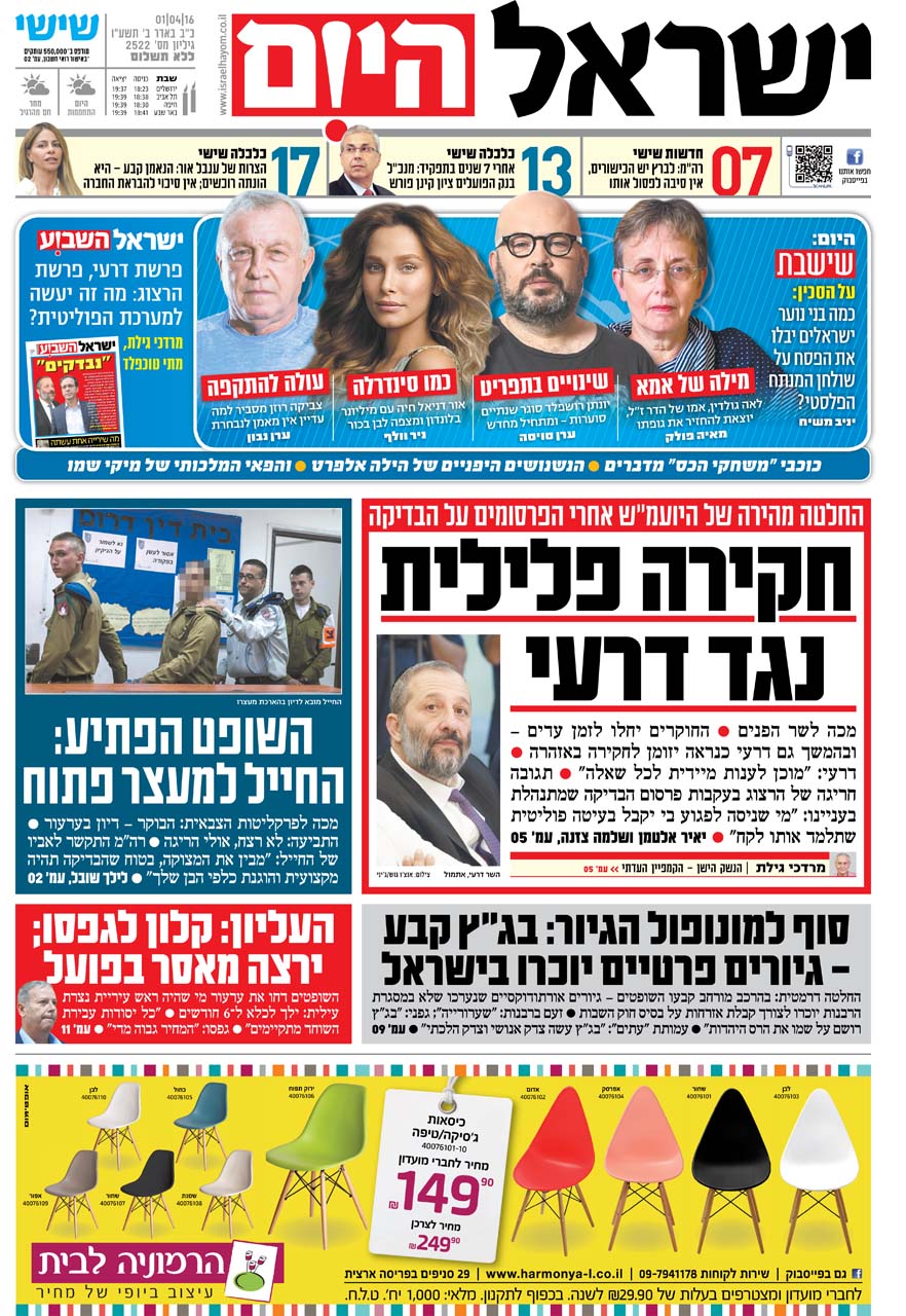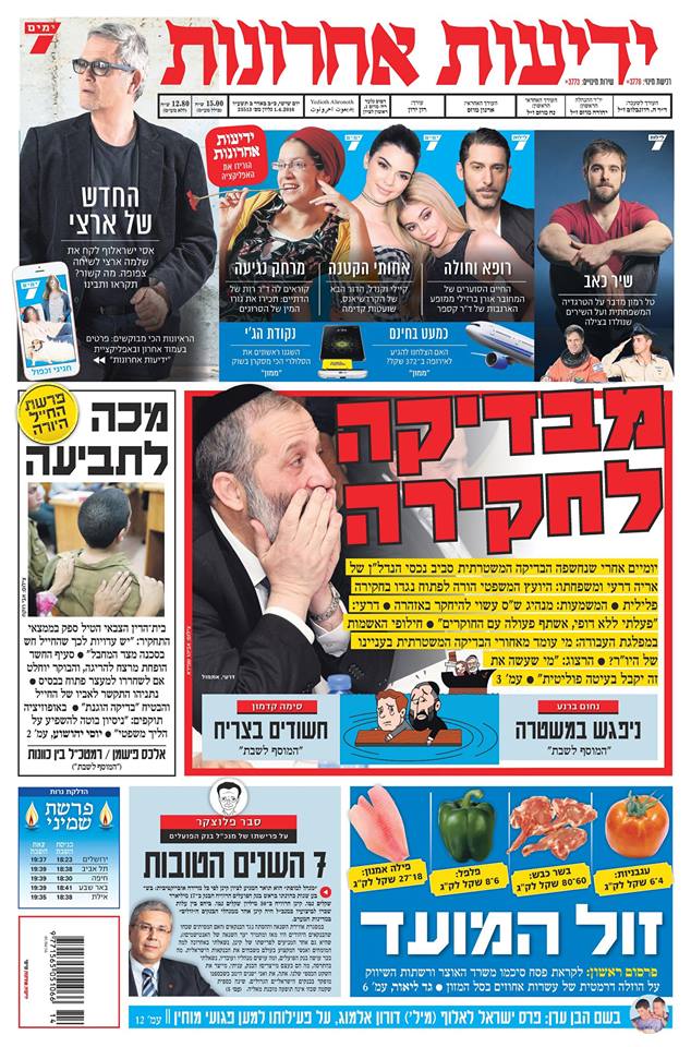 כותרות עיתונים 01/04/2016 - ישראל היום / ידיעות אחרונות