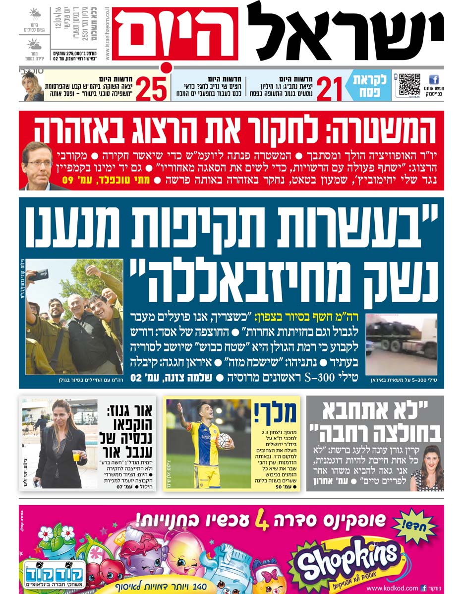 כותרות עיתונים 12/04/2016 - ישראל היום / ידיעות אחרונות