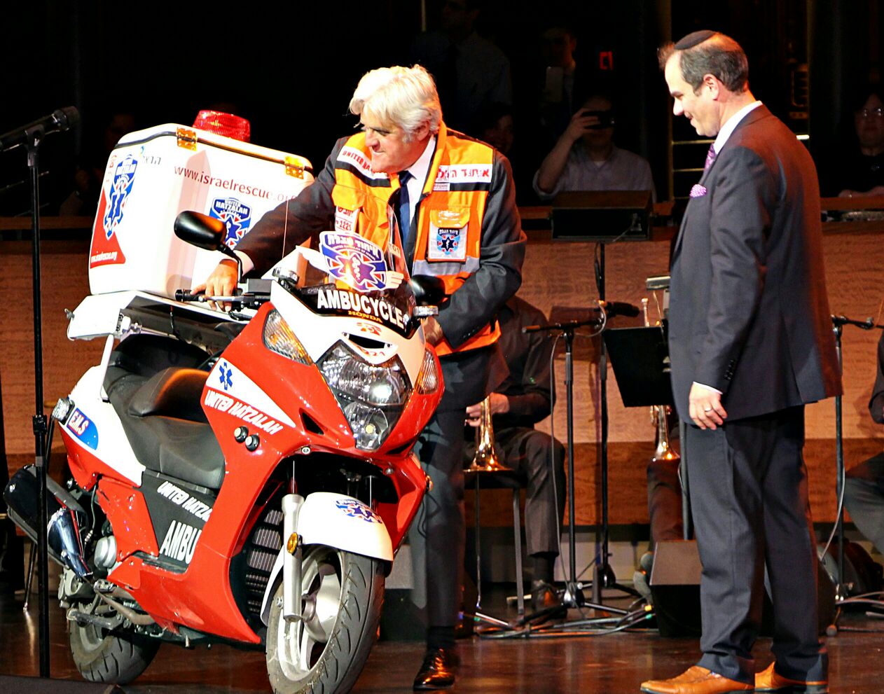 ג'יי לנו תרם לאיחוד הצלה אופנוע אמבולנס