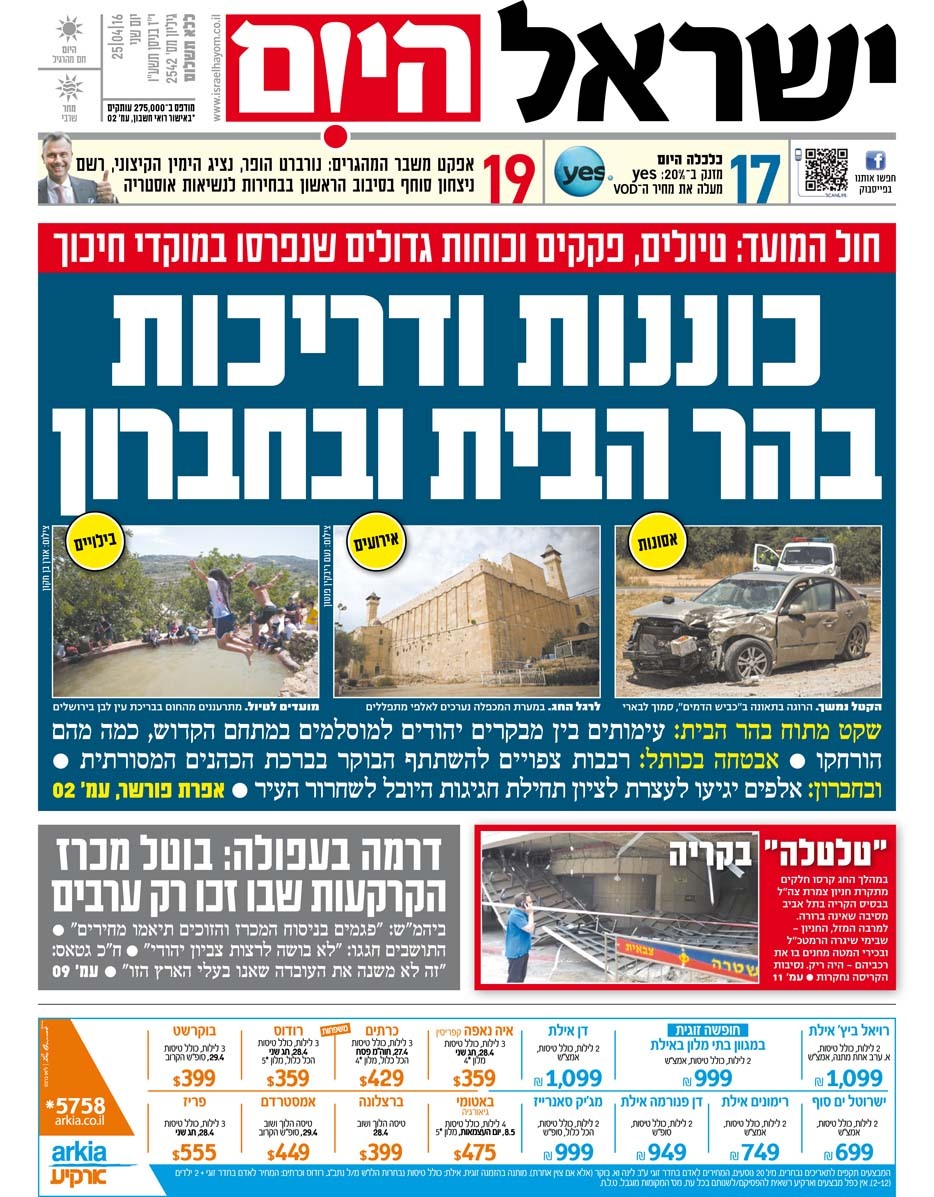 כותרות עיתונים 25/04/2016 - ישראל היום / ידיעות אחרונות