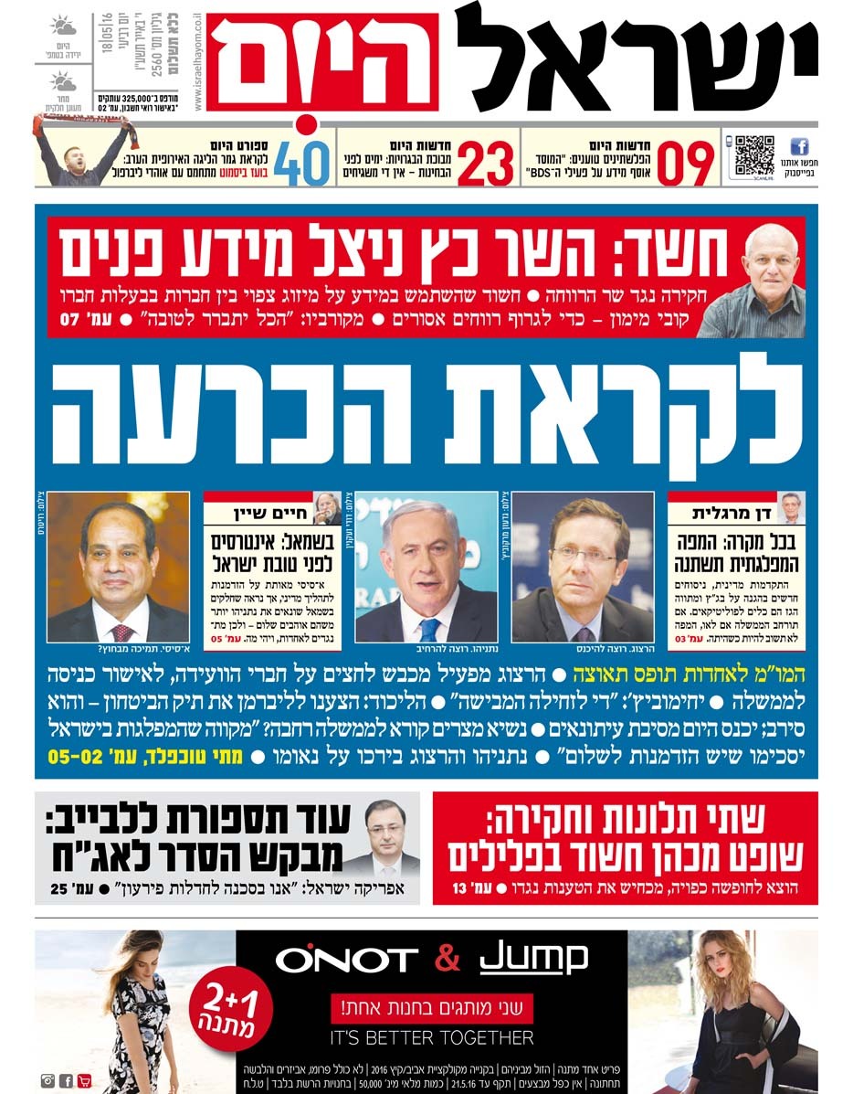 כותרות עיתונים 18/05/2016 - ישראל היום / ידיעות אחרונות
