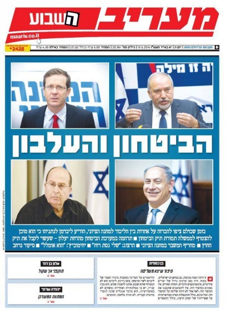 שערי עיתונים - 19.05.16 - ישראל היום, ידיעות אחרונות, מעריב