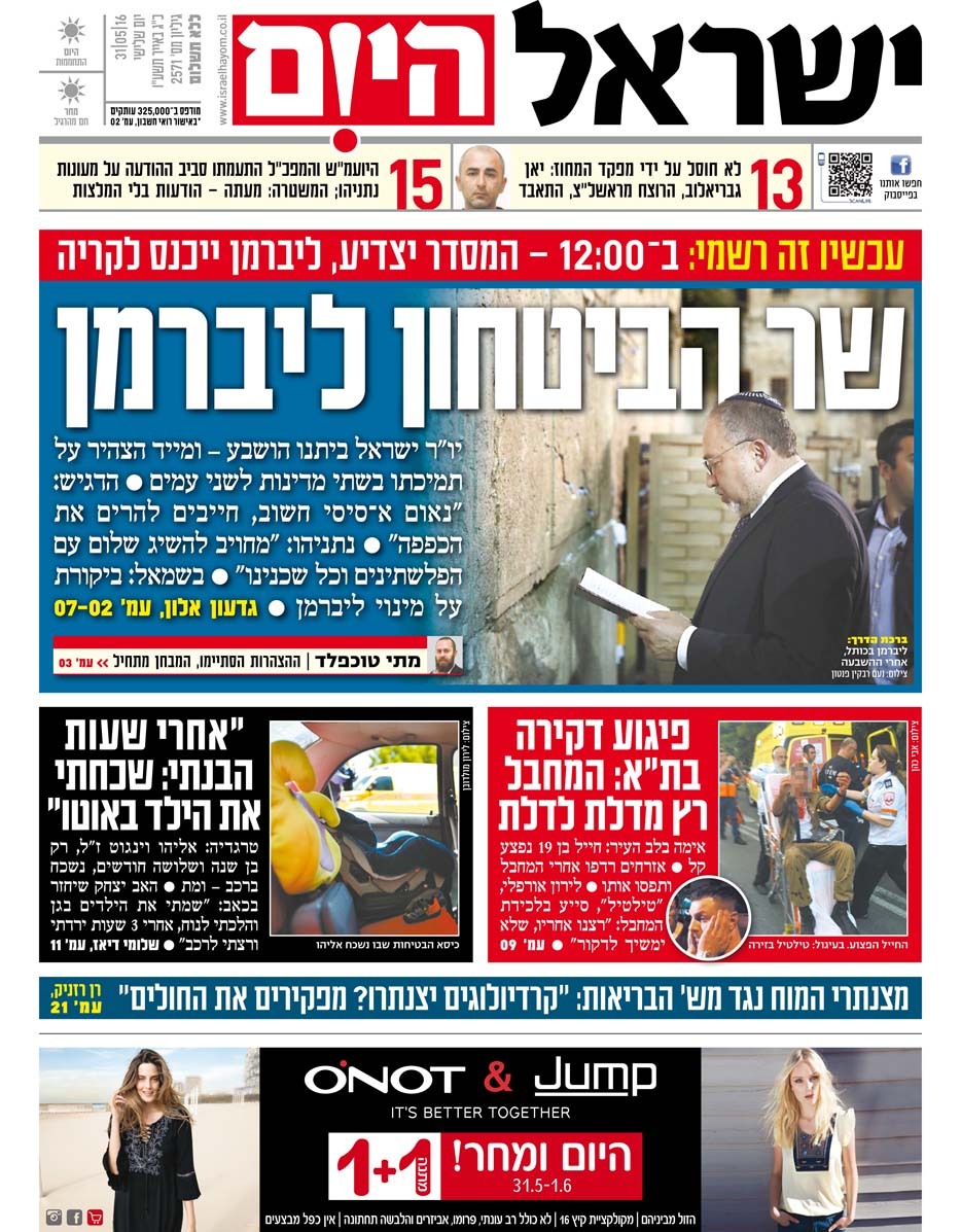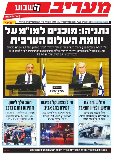 שער עיתון ישראל היום, ידיעות אחרונות, מעריב - 31.05.2016