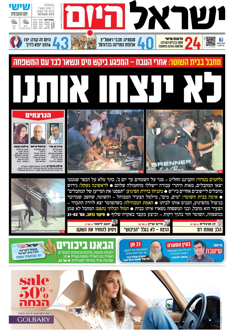 כותרות עיתונים 10/06/2016 - ישראל היום / ידיעות אחרונות