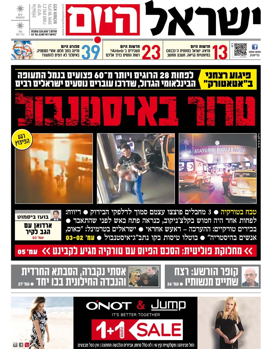 כותרות עיתונים 29/06/2016 - ישראל היום / ידיעות אחרונות