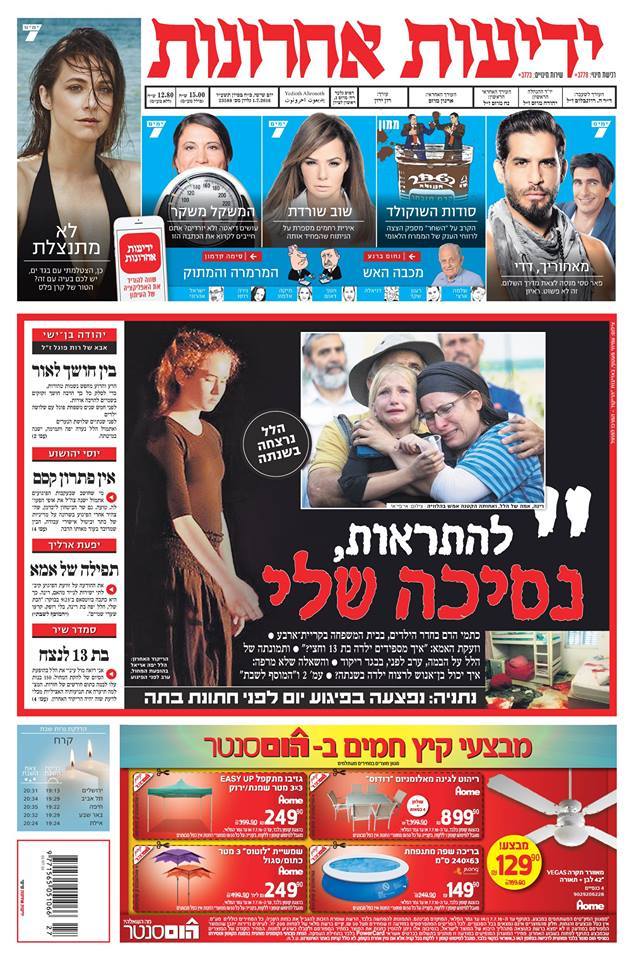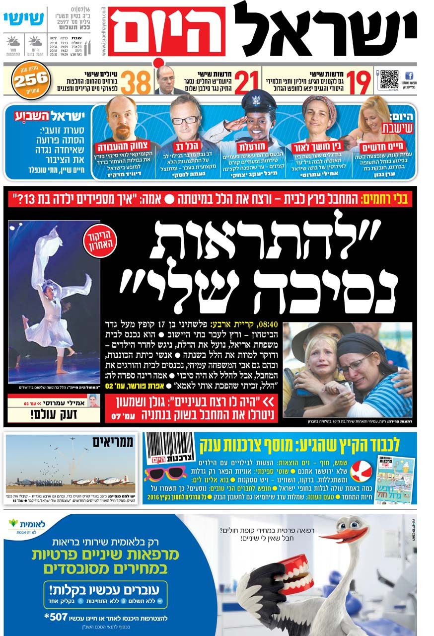 כותרות עיתונים 01/07/2016 - ישראל היום / ידיעות אחרונות