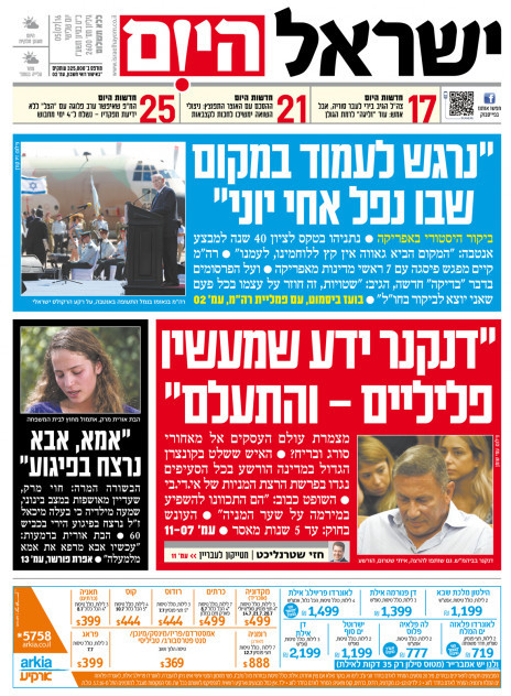 שערי עיתונים - 5.7.16 ישראל היום / ידיעות אחרונות / מעריב