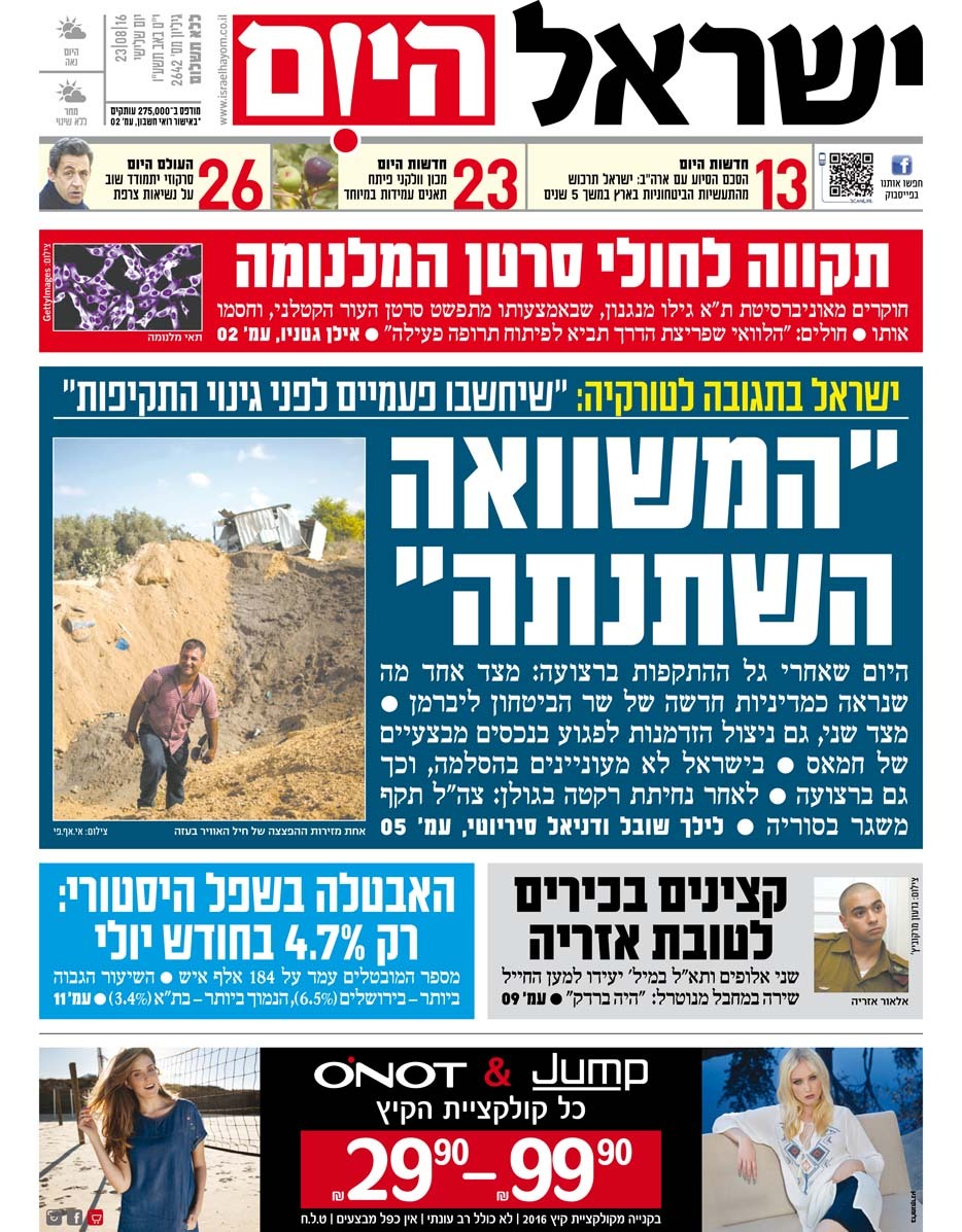 כותרות עיתונים 23/08/2016 - ישראל היום / ידיעות אחרונות
