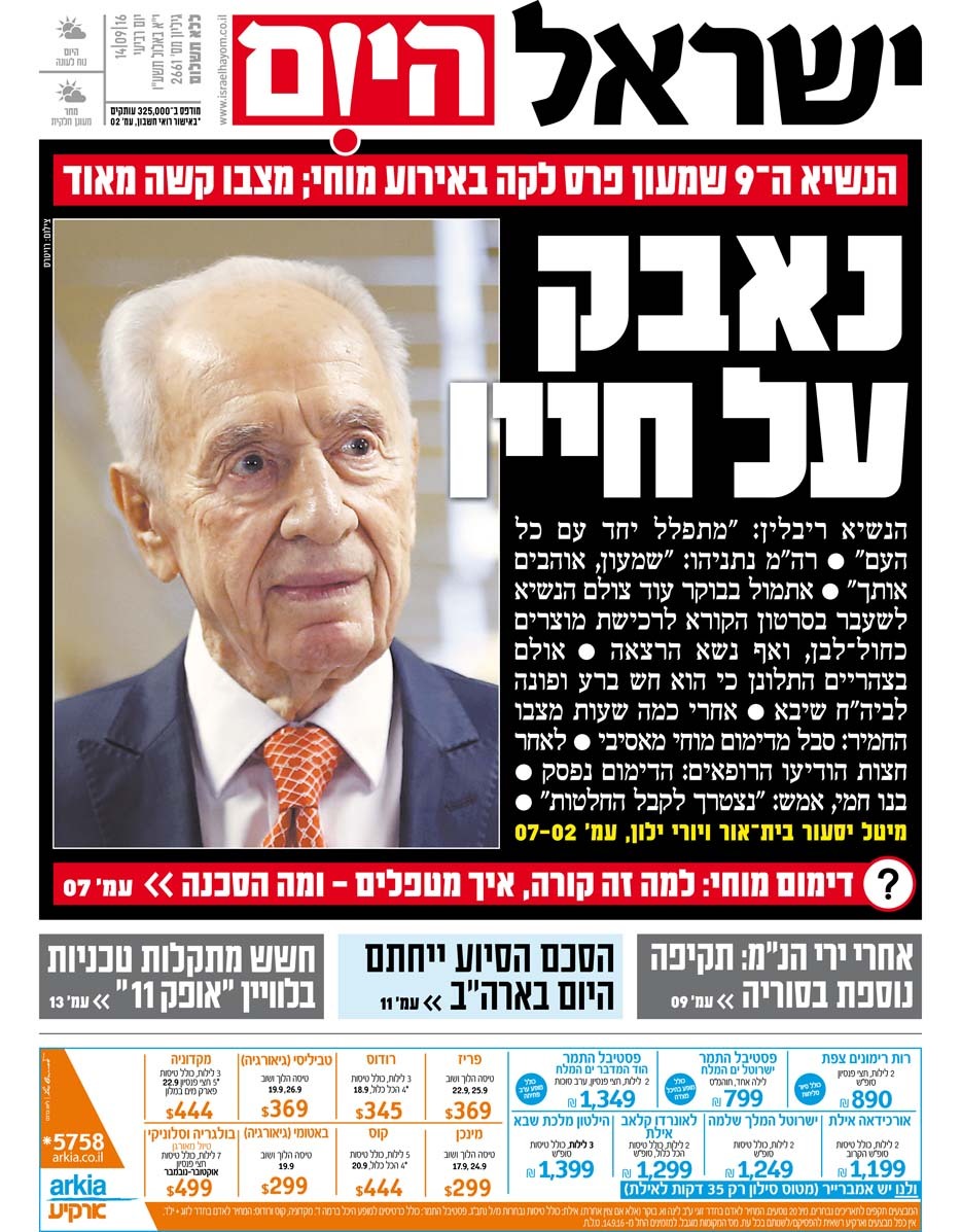 כותרות עיתונים 14/09/2016 - ישראל היום / ידיעות אחרונות
