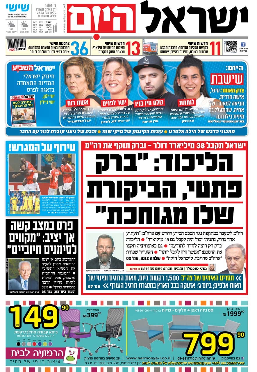 כותרות עיתונים 16/09/2016 - ישראל היום / ידיעות אחרונות