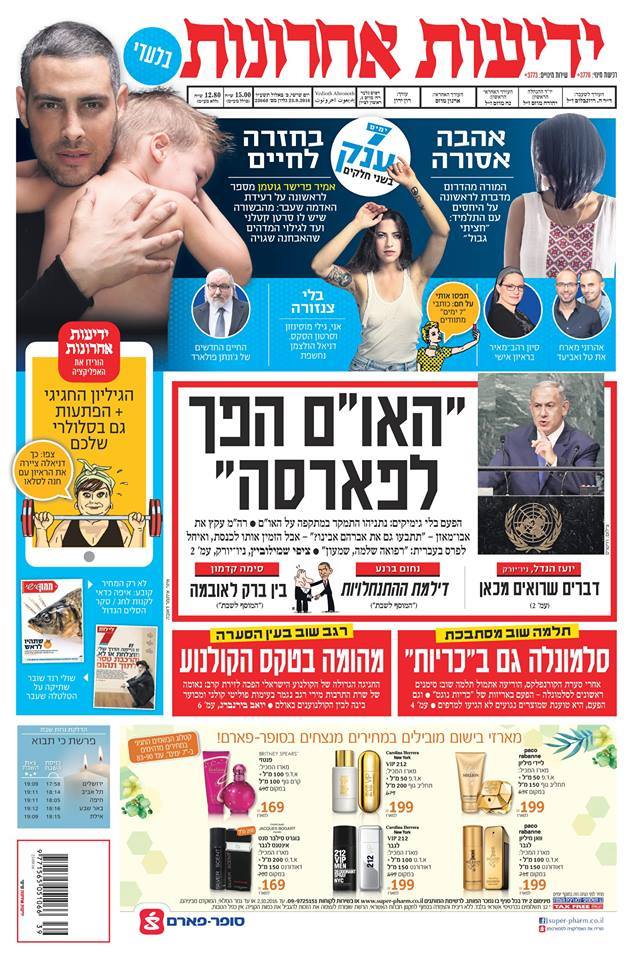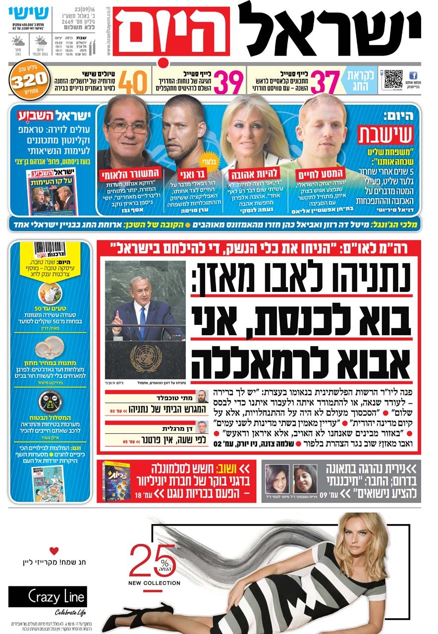 כותרות עיתונים 23/09/2016 - ישראל היום / ידיעות אחרונות