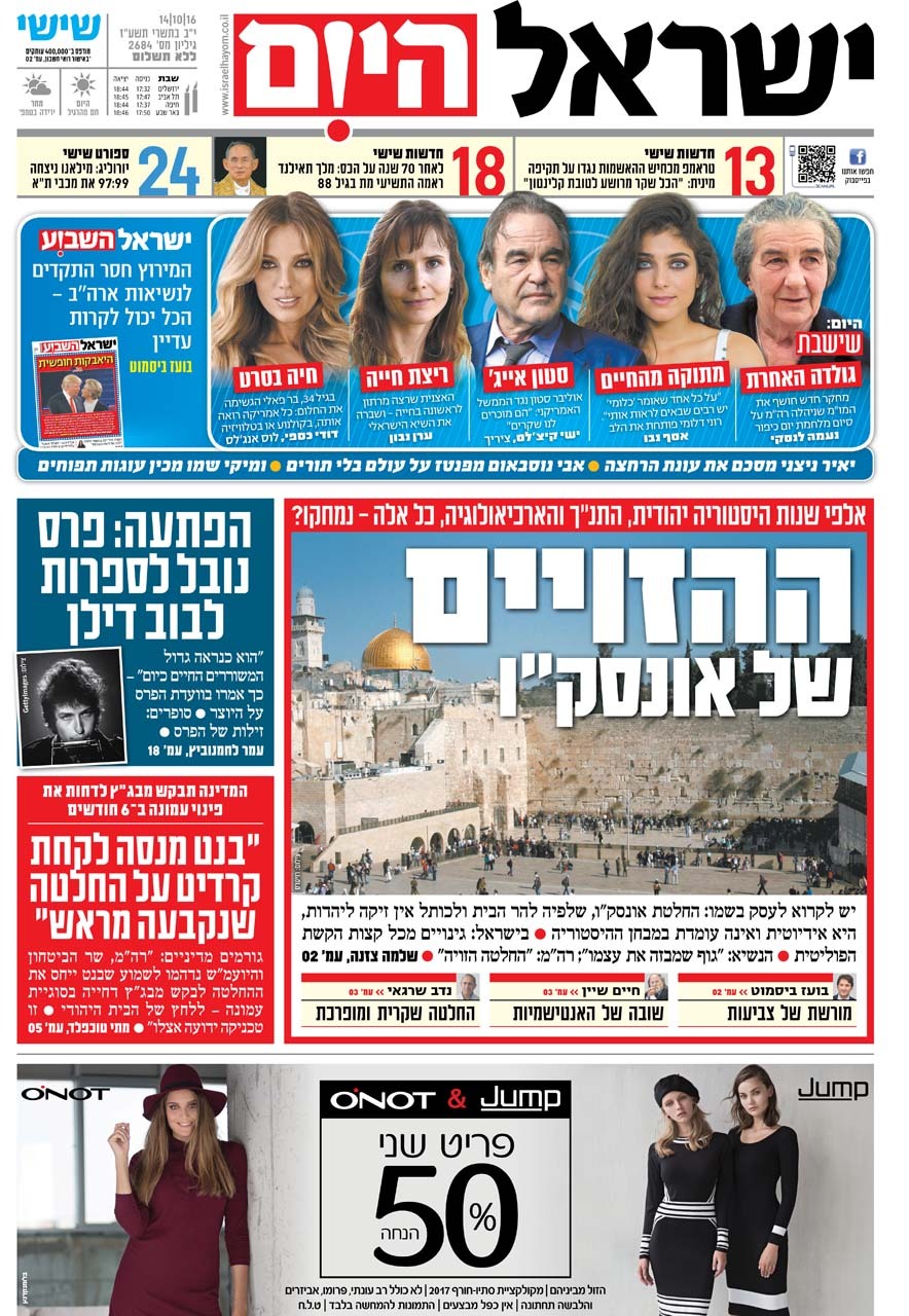 כותרות עיתונים 14/10/2016 - ישראל היום / ידיעות אחרונות
