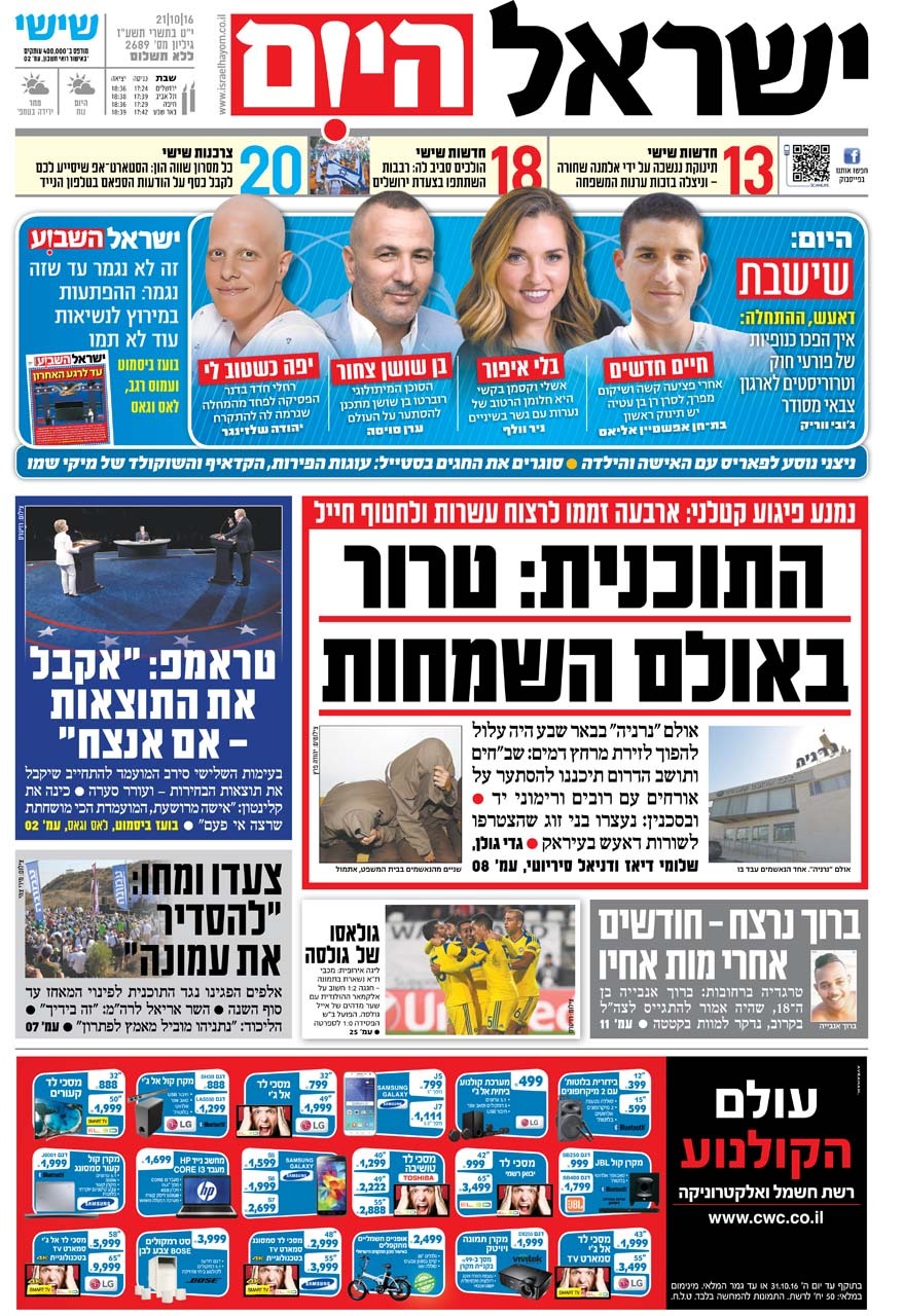 כותרות עיתונים 21/10/2016 - ישראל היום / ידיעות אחרונות