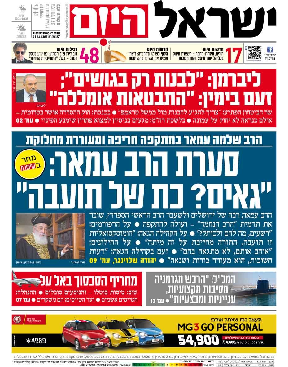 כותרות עיתונים 17/11/2016 - ישראל היום / ידיעות אחרונות