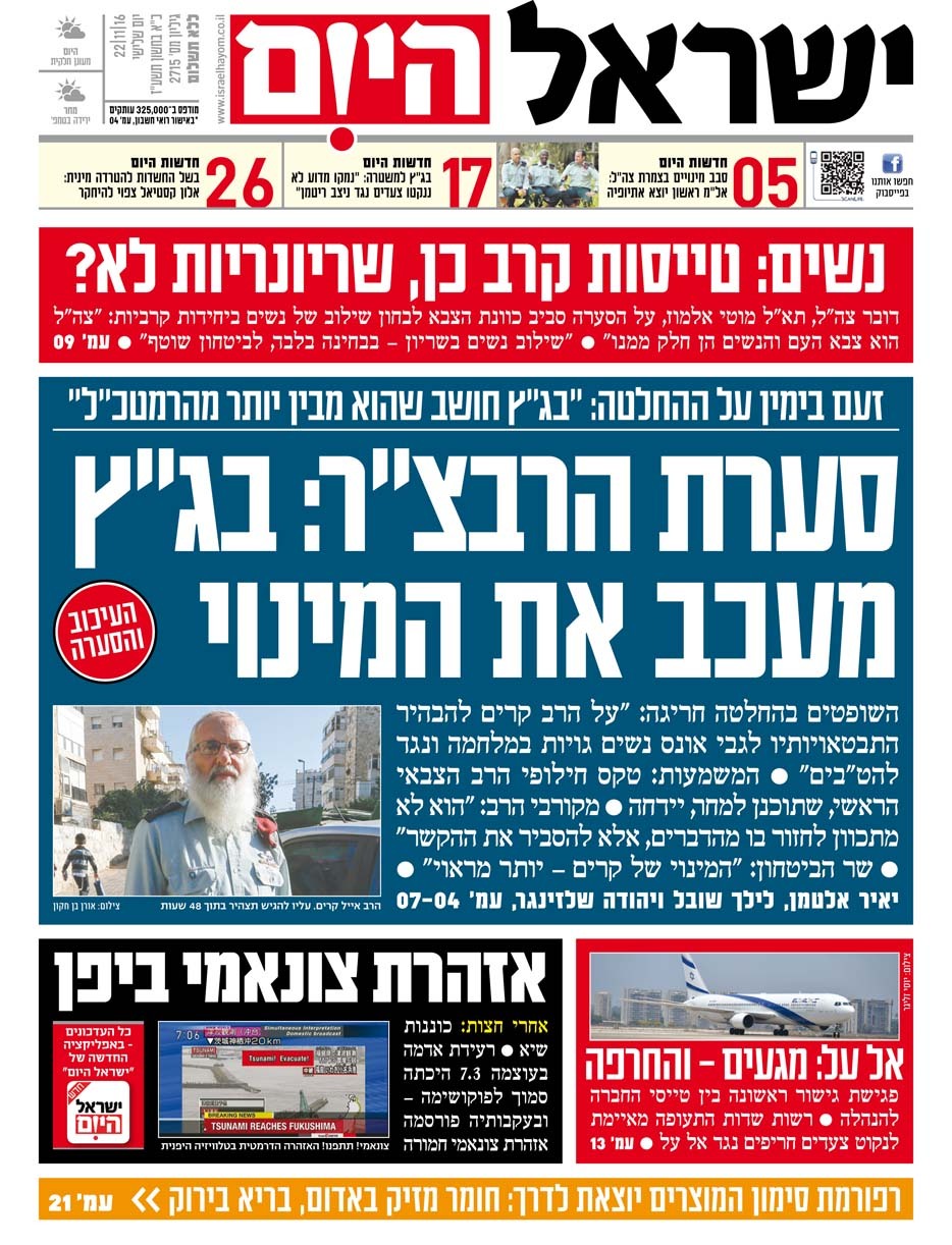 • כותרות עיתונים 22/11/2016 - ישראל היום / ידיעות אחרונות תמונה מצורפת וידאו מצורף