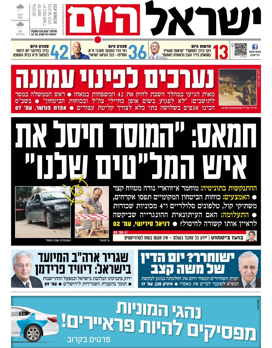 כותרות עיתונים 18/12/2016 - ישראל היום / ידיעות אחרונות