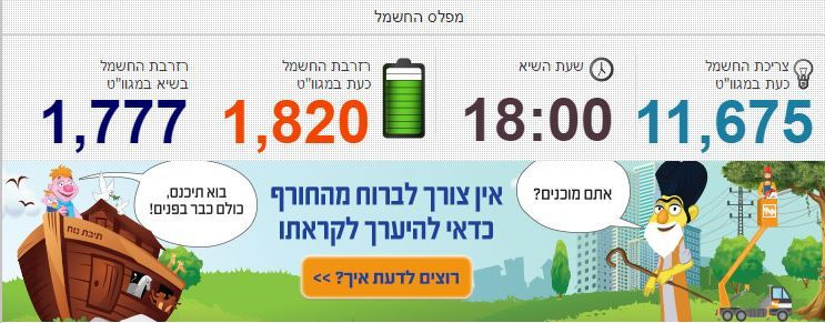 הערב, בשעה 18:30 נשבר שיא הביקוש לחשמל לחודש דצמבר בכל הזמנים שעמד על 12,045 מגוואט. בשנת 2013 שיא צריכת החשמל בדצמבר עמד על 11,635 .