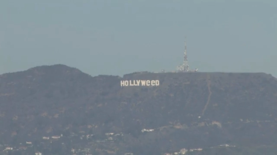 שלט הוליווד המפורסם שונה במהלך הלילה על ידי אלמונים ל hollyweed המשטרה חוקרת. שידור בפייסבוק של רשת cbs עם מעל ל 100 אלף צופים: https://www.facebook.com/CBSLA/videos/10154894411590859