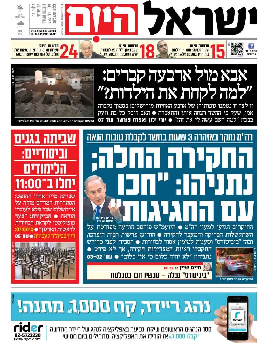 כותרות עיתונים 03/01/2017 - ישראל היום
