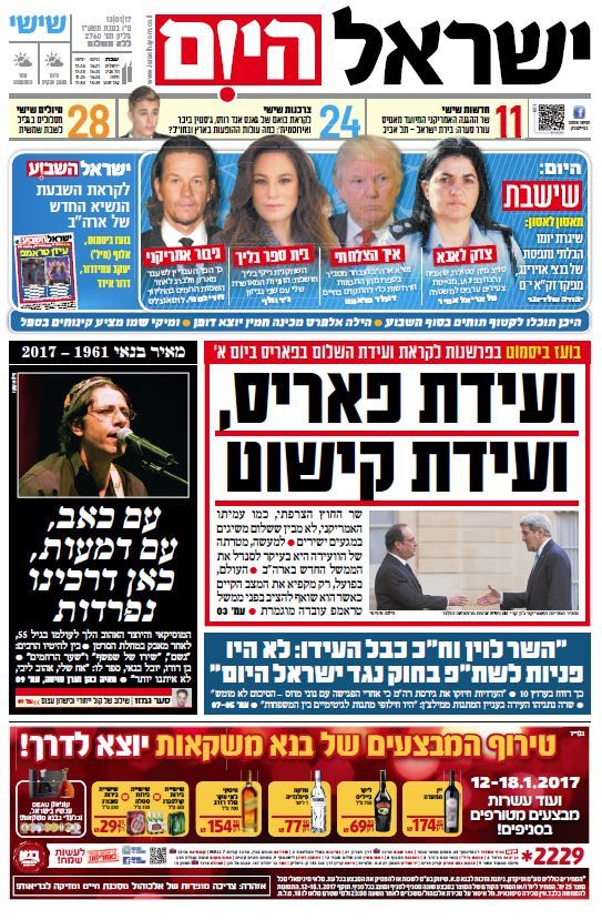 כותרות עיתונים 13/01/2017 - ישראל היום / ידיעות אחרונות