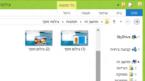 טיפ: בחלק מהמקלדות יש מקש חלונות (Windows) אפשר ללחוץ Alt+מקש חלונות והתמונה תישמר ישר לספריה C:\Users\username\Pictures\Screenshots