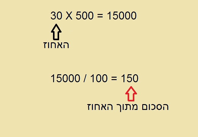 1. נכפיל את האחוז במספר - 30X500 התוצאה: 15000
